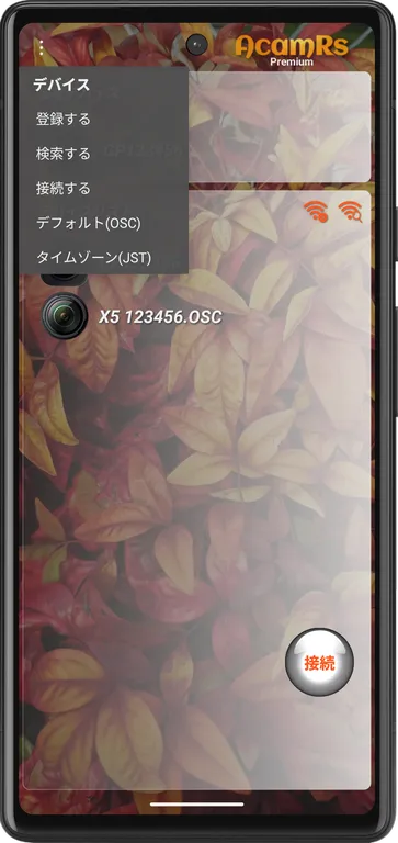接続するデバイス(アクションカメラ)を表示します。