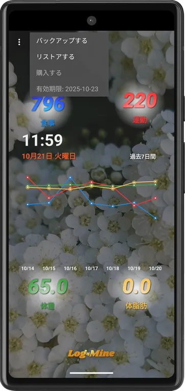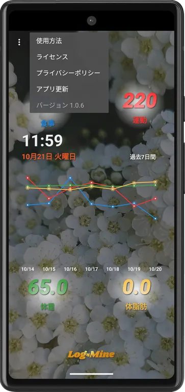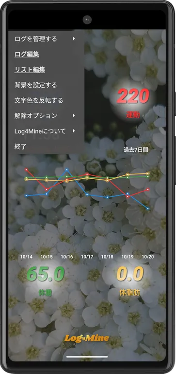 日常生活の行動(ログ)を数値データとして記録、グラフ表示できる”ライフログ”アプリです。