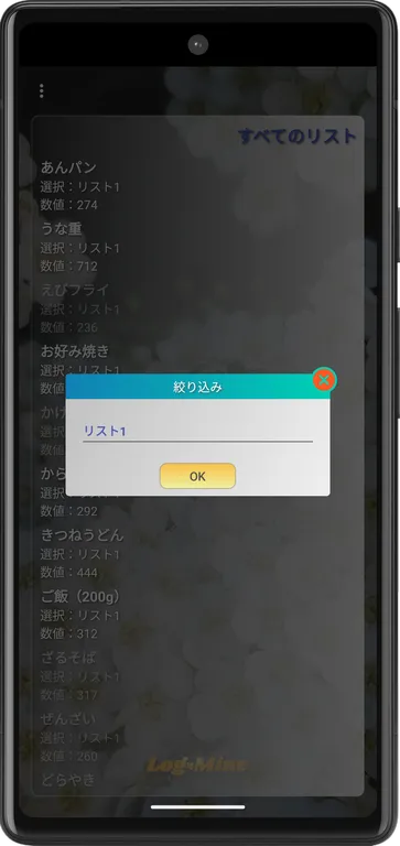 ①リスト編集画面のすべてのリストをタップし、対象をフィルタリングします。
