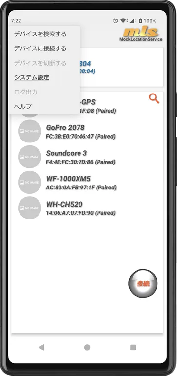 ・スマホの位置情報が、接続でGPSロガーに切り替わり、切断でスマホ内蔵GPSに切り戻しできる