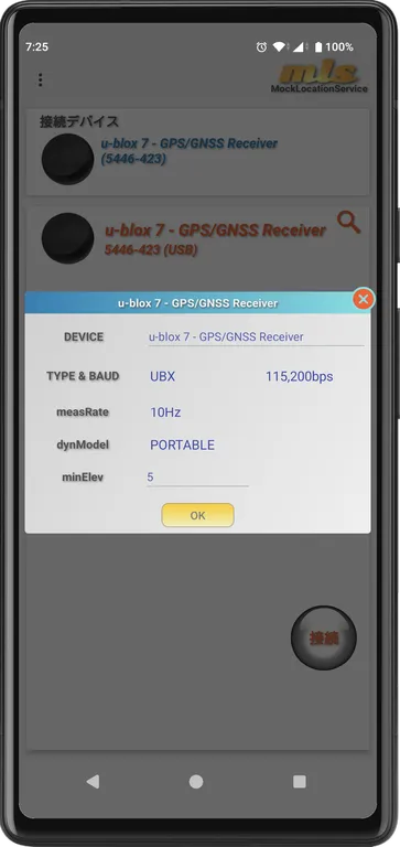 GPSロガーのデジスパイスやGL-770、GPSレシーバのBU-353NやUG-353から受信した位置情報をスマホの位置情報として中継して、位置の精度と更新レートを向上させるサービス型アプリです。